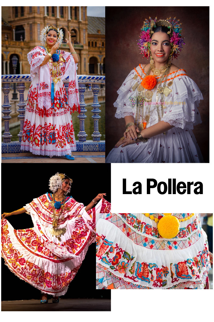 Panamanian Pollera: Recognized as one of the most elaborate traditional garments in the Americas, it is handmade, often on fine-threaded fabric, and features intricate lacework and embroidery, which can take up to two years to make.